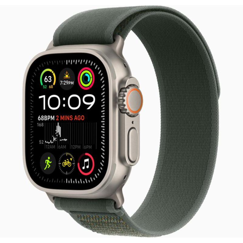 Apple Watch Ultra 2 GPS + Cellular 49 мм з натуральним титановим корпусом і ремінцем Green Trail Loop розміру S/M (артикул MXTN3) – флагманський смарт-годинник від Apple, призначений для активного способу життя та екстремальних умов.