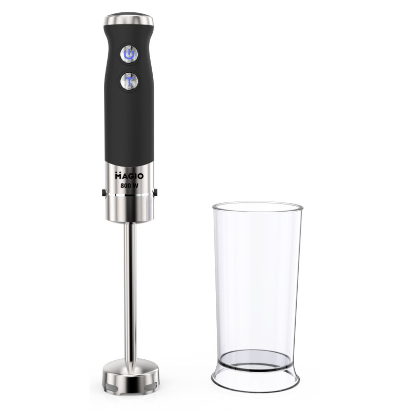 Блендер MG-647 дозволить різноманітнити ваше меню та приготувати новий кулінарний шедевр. Потужність блендера становить 800 Вт, що забезпечує безшумну ефективну роботу протягом тривалого часу. Занурювальна частина виконанана з нержавіючої сталі – запорука стійкості до зношування і довговічності. Блендер може працювати на 13 швидкостях, що плавно перемикаються. Перемикач знаходиться на держаку приладу, що дуже зручно. До комплекту входить пластиковий мірний стакан. Ці властивості в поєднанні з компактним дизайном роблять блендер незамінним помічником на вашій кухні.