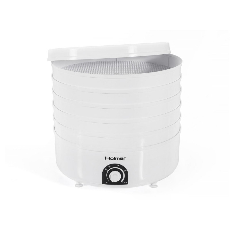 З п’ятьма незалежними піддонами діаметром 32,5 см і висотою 4 см, сушка Holmer HFD-51W дозволяє сушити різні типи продуктів одночасно, забезпечуючи вони не змішуються між собою. Вона ідеально підходить для сушіння овочів, фруктів, ягід, трав, грибів, риби та багато іншого. Окрема насадка призначена для дрібних ягід, а також можливість приготування домашньої пастили робить її універсальним рішенням для кожної кухні.